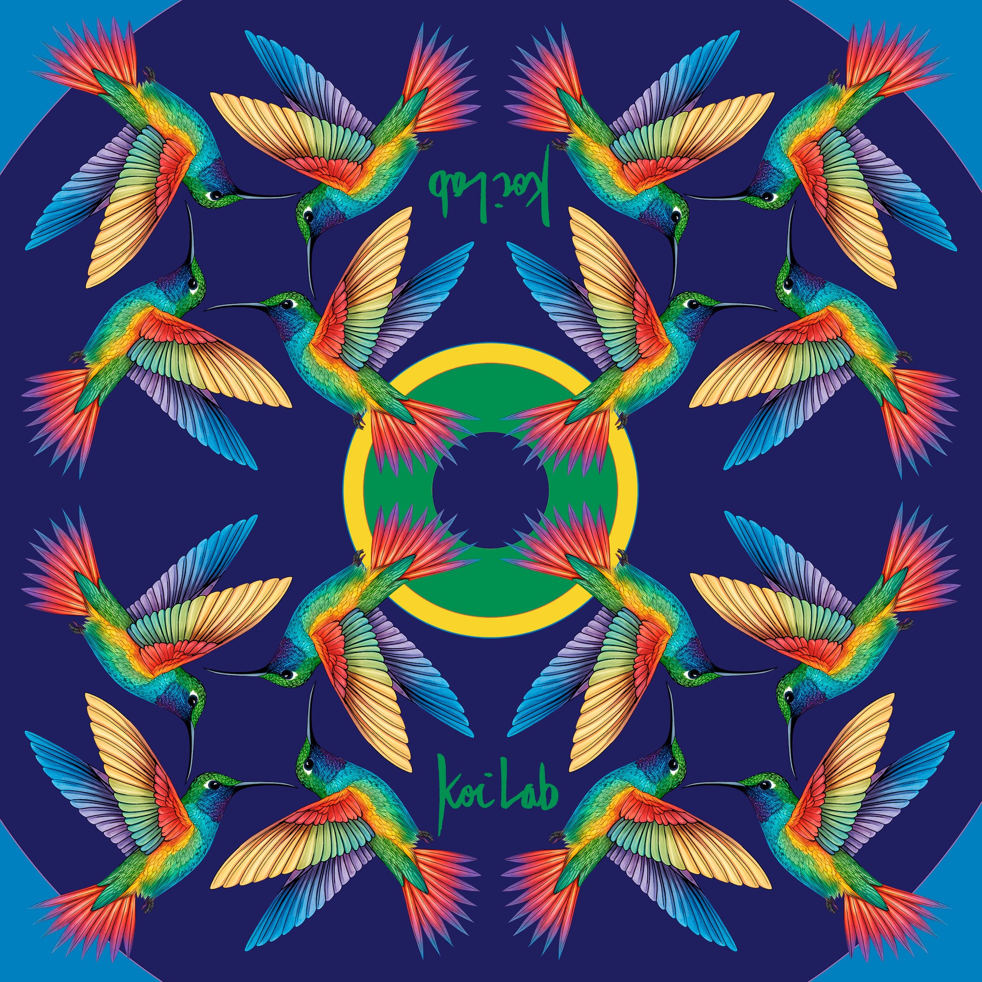 Una ronda de colibríes en vuelo eterno, moviéndose como una rueda de energía multicolor sobre un cielo profundo. Este pañuelo es un recordatorio de que lo más pequeño también puede ser poderoso, veloz, libre y lleno de color.